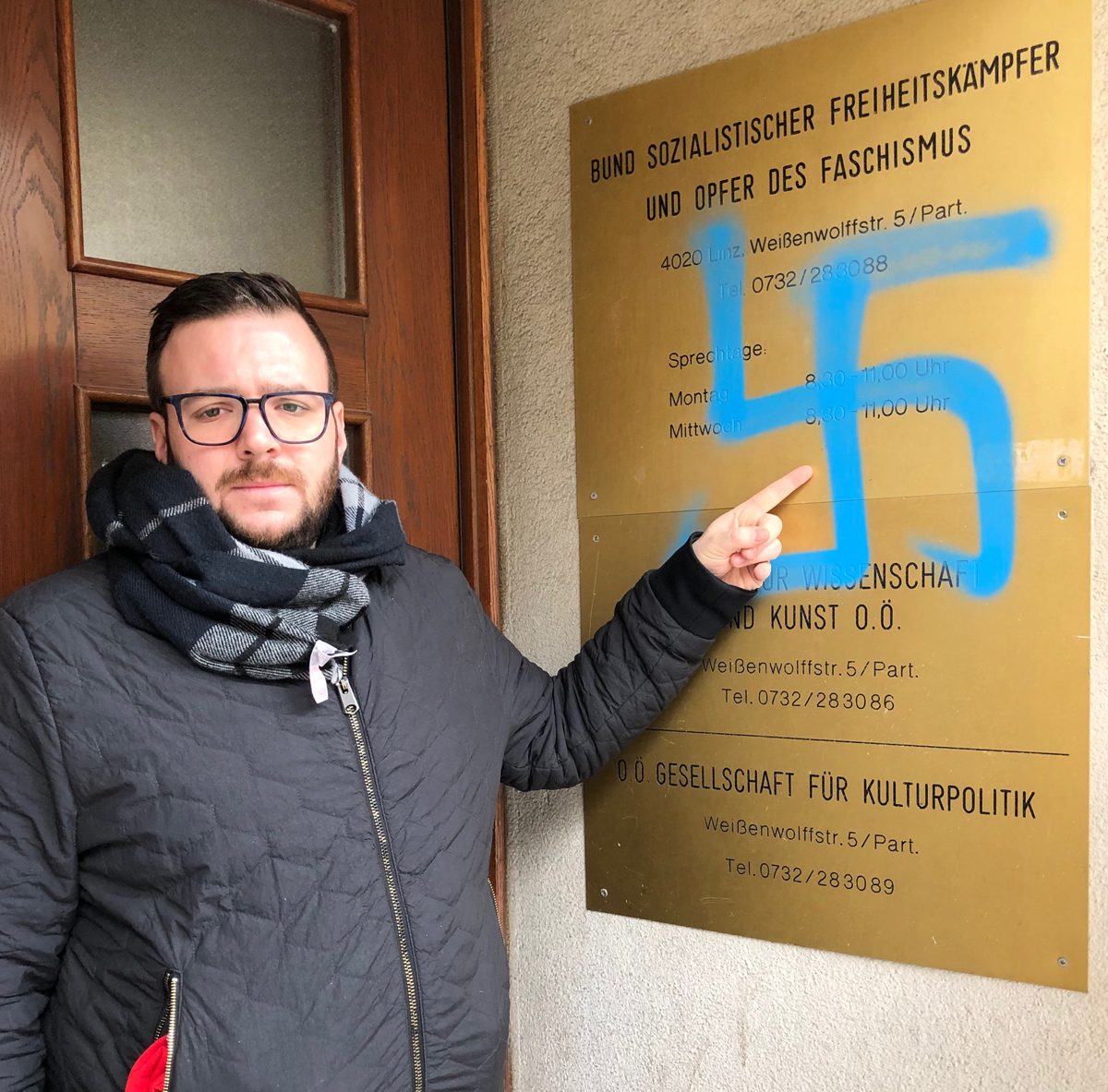 Das Schild am Büro des „Bundes Sozialdemokratischer FreiheitskämpferInnen, Opfer des Faschismus und aktiver AntifaschistInnen Oberösterreich“ in der Weißenwolffstraße in Linz wurde mit einem blauen Hakenkreuz beschmiert. „Wir sind entsetzt über […]